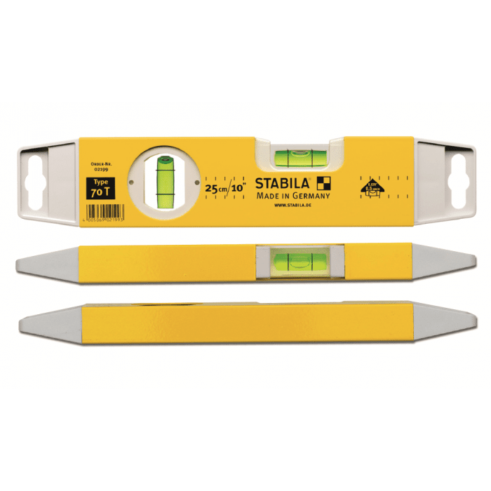 This light and versatile level is an invaluable part of any tool box. The compact design of the 70 T is an ideal tool for levelling in confined spaces. Because of its size it fits into a side pocket of any trade trousers, so it can be with you at all times. As with all STABILA levels the vial is precisely aligned with the measuring surface then locked together ensuring long life accuracy.