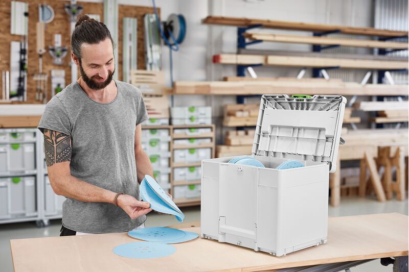 In a Systainer, your abrasives are perfectly protected against external influences such as dust, spraying water or bending. A Systainer also allows you to professionally transport your abrasives to the construction site. The Systainers are compatible with each other and can be connected to all previous Systainer generations as well as many machines and accessories.
