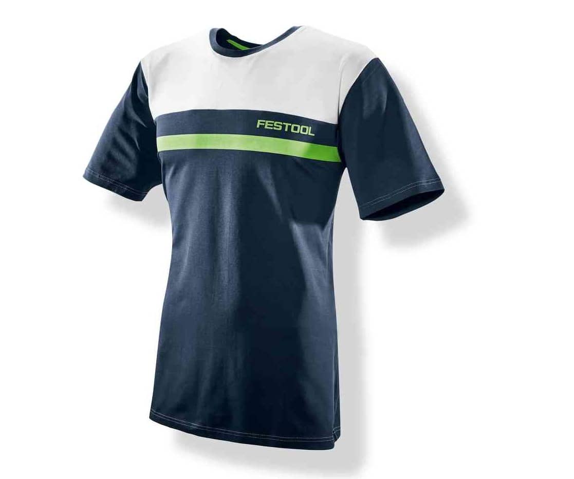 This modern single-jersey men's T-shirt in a regular fit is distinguished by special wearing comfort due to the high proportion of cotton. The interplay of colours in the contrasting colours of blue, white and green with the discreet Festool print reflects the zeitgeist of the colour block. The T-shirt is made especially comfortable by the Teflon coating, which not only feels good but also promises long-term colour stability. The small details, for example the small label in the side seam or the contrasting seams round off the design.