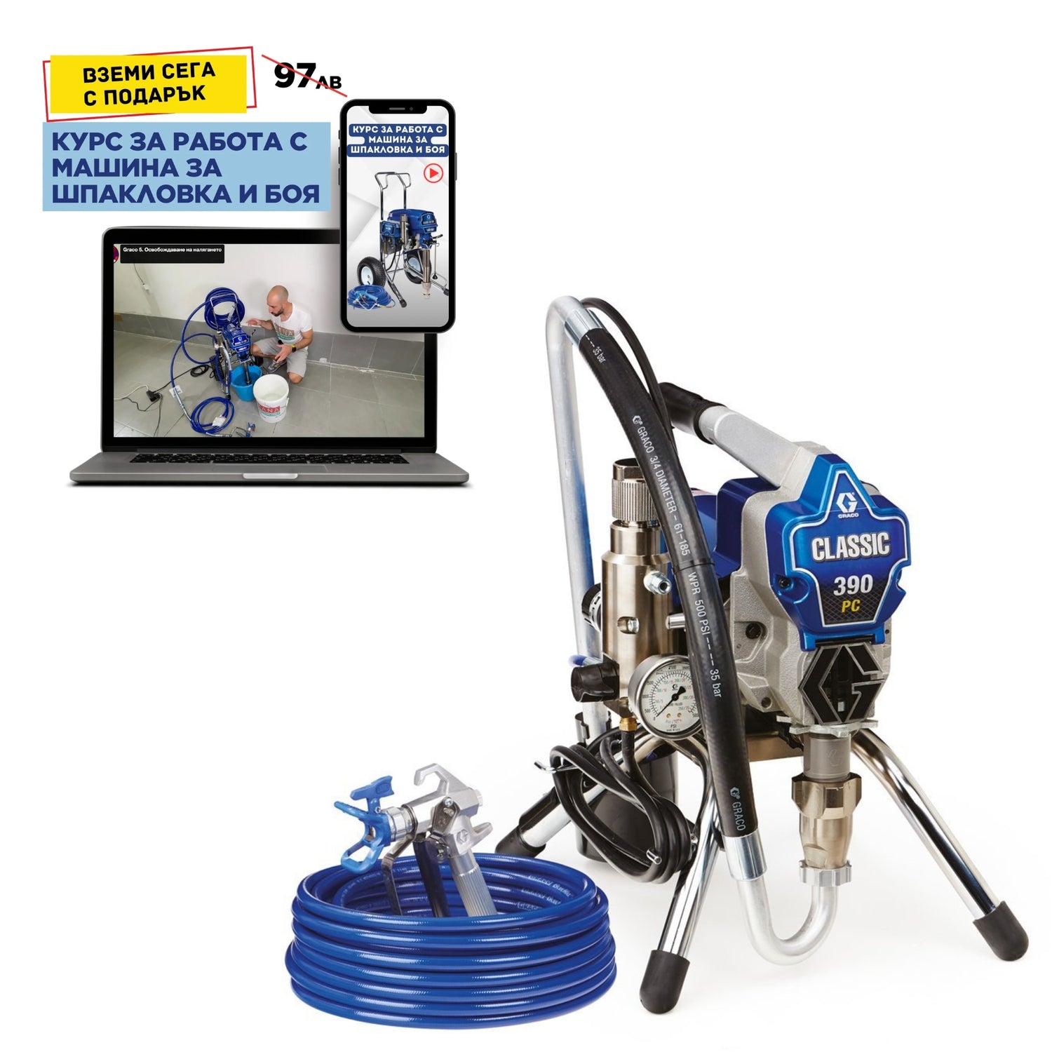 Безвъздушна бояджийска система Graco 390 Classic PC на стойка