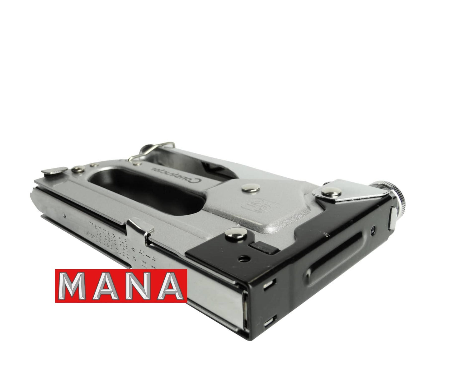 MANA Tacker for fast fastening of textile material with a wooden or wood-like base using staples and upholstery nails. The construction of the tacker allows for quick and effective work thanks to the precise tensioning and triggering mechanisms. A suitably capacious magazine allows for long-term work without the need to refill staples.