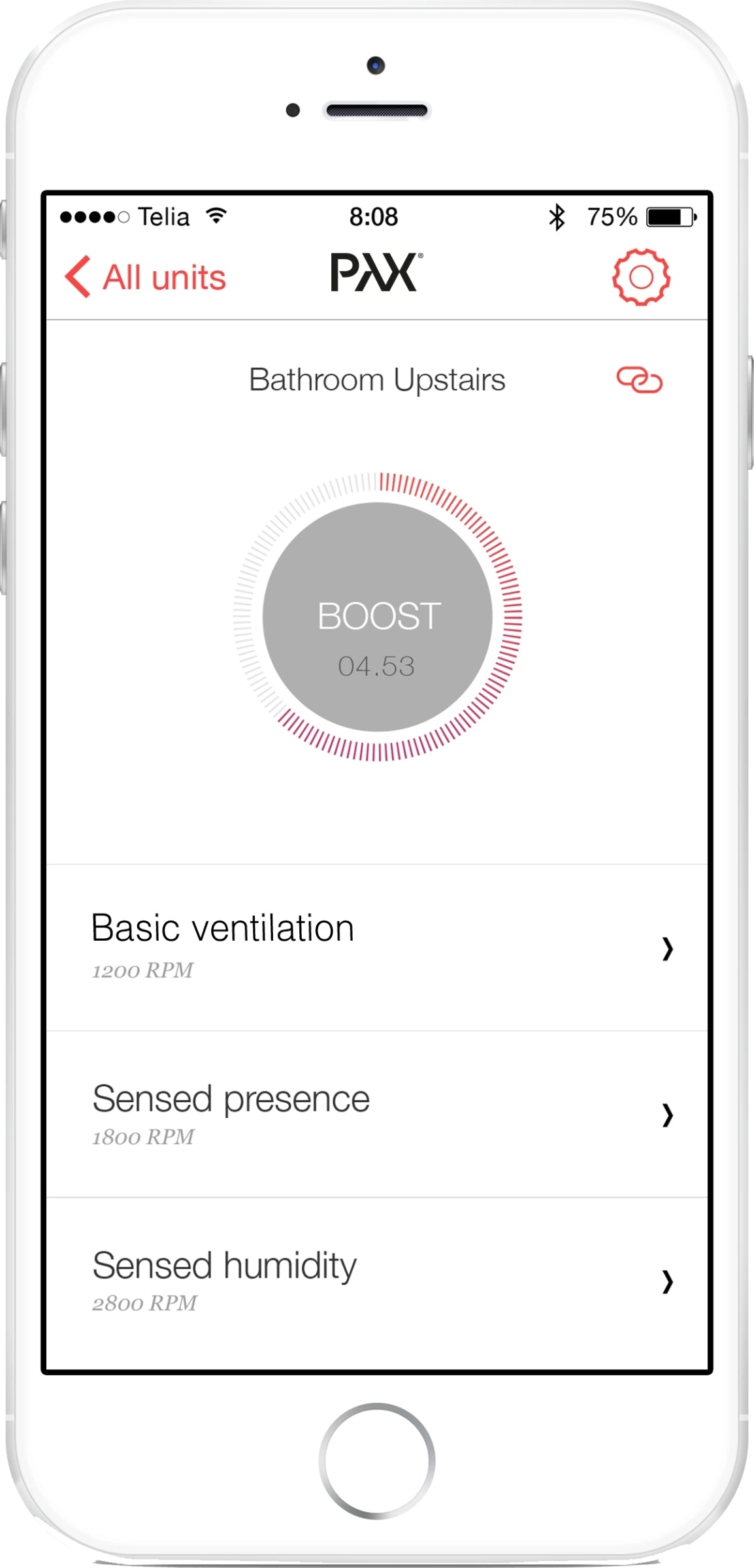 Pax Norte is an automatic bathroom fan designed and manufactured in Sweden. The multitude of functions and settings make it unique and unparalleled on the Bulgarian market. Quiet, smart and powerful, Pax Norte, once set up, will keep your bathroom dry and fresh without you having to operate it. If you want additional settings, download the app from the Internet and use your mobile phone to customize the fan.