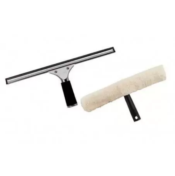 Stainless steel strip with natural, vulcanized rubber and stainless steel holder with rubber handle. The tire adheres perfectly to the cleaned surface and leaves no traces.