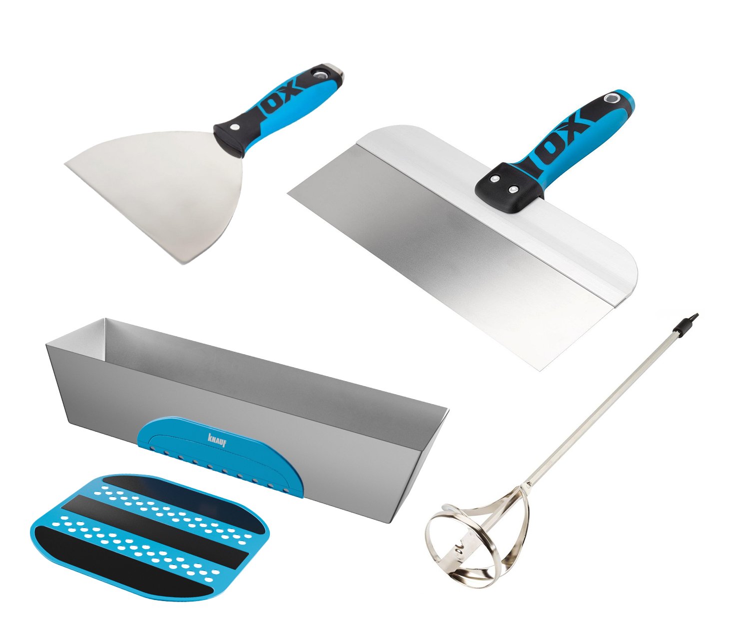 OX PRO set - joint knifes, mixing paddle and mud pan