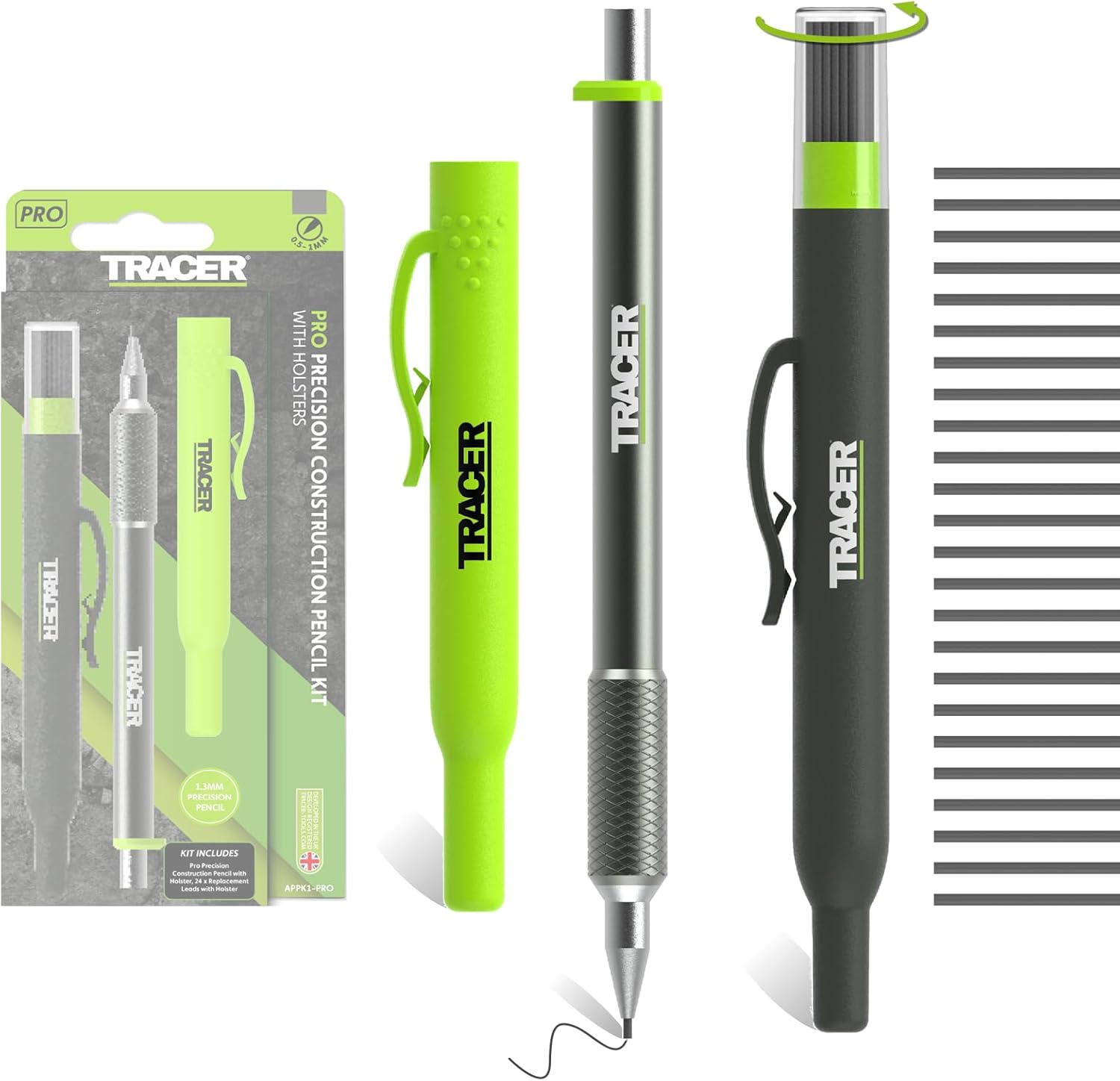 - BUILT FOR CONSTRUCTION - The TRACER Pro Series Precision Pencil is built from High-quality Aluminium specifically for the wear and tear of construction sites. Comes with accompanying site holsters for easy attachment to your clothing or belt for easy access at any time