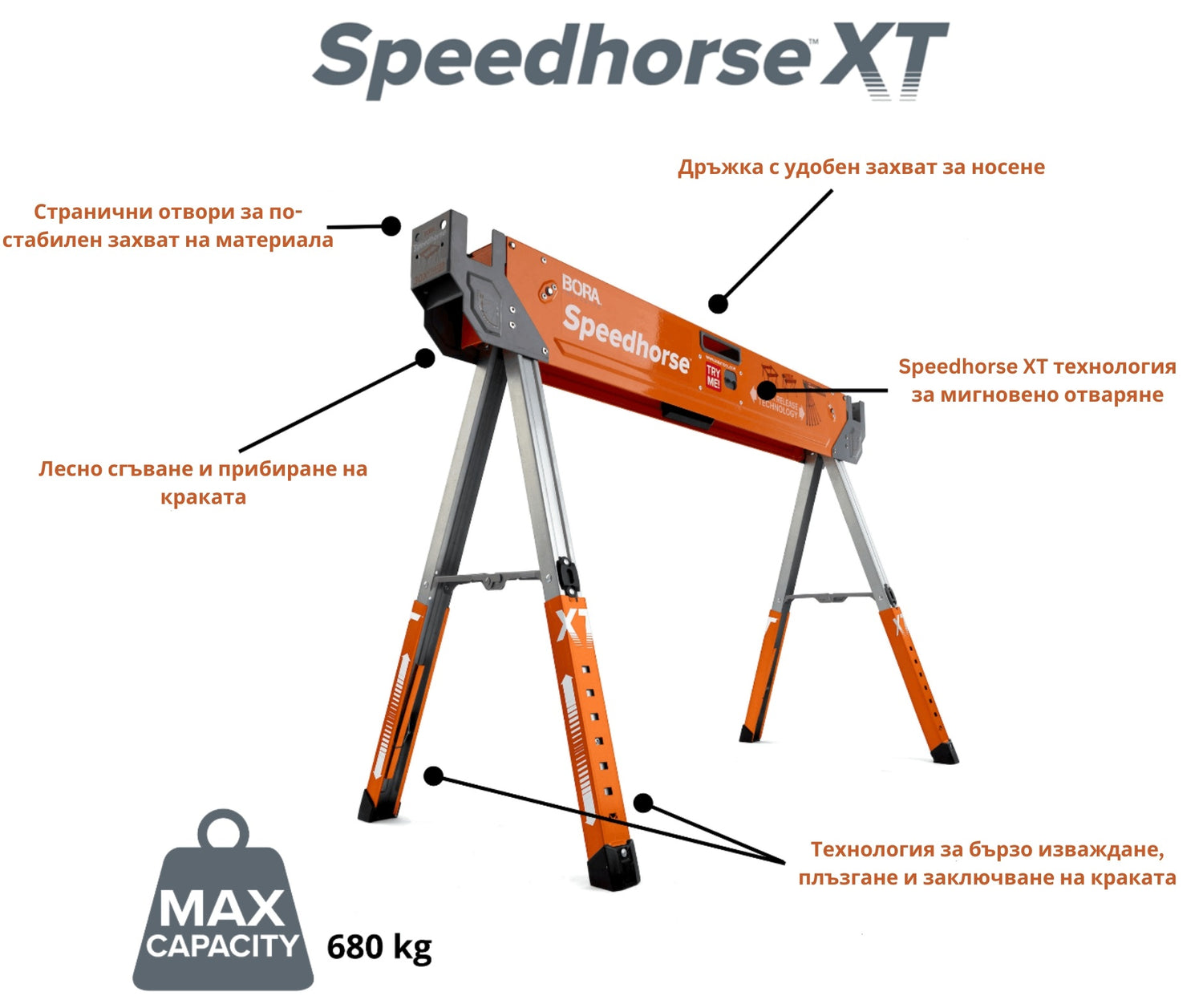 Bora Speedhorse XT е идеалният избор, ако търсите преносима система за подпомагане на работата си.