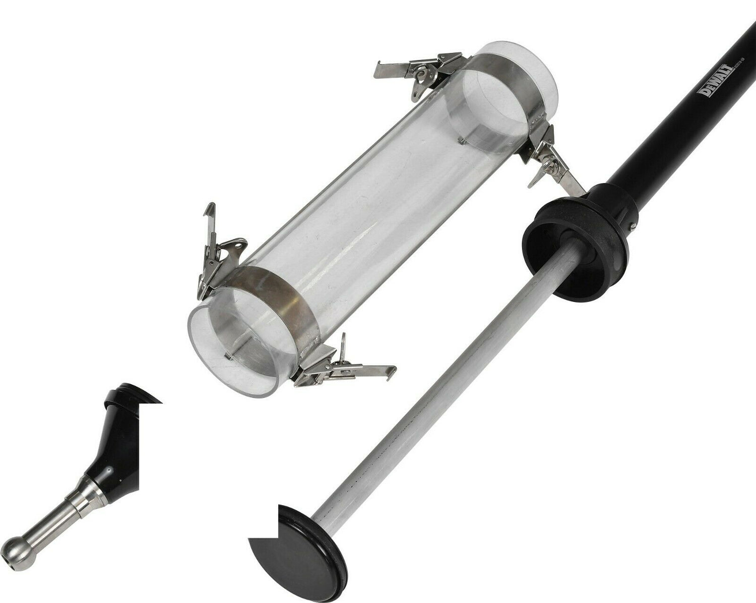Помпата има голям прозрачен цилиндър от поликарбонат, която осигурява изключителен капацитет за по-малко пълнения от помпата. Здравият газов цилиндър осигурява 82 lb налягане - удвоява силата на натиск - което позволява използването на по-гъсти смеси и по-добър дебит, като същевременно е лесна за пълнене.