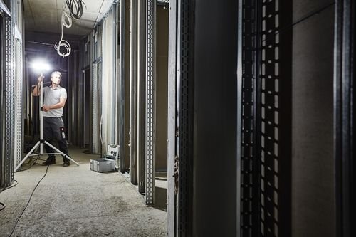 - Различни възможности за употреба: Стоящ на пода или върху някаква повърхност, върху статив Festool или висящ на куки благодарение на възможността за закачане на задната страна на SYSLITE DUO