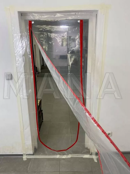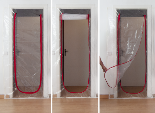 Защитен найлон за врата с цип Pentrilo изолира помещенията от прах и мръсотия.