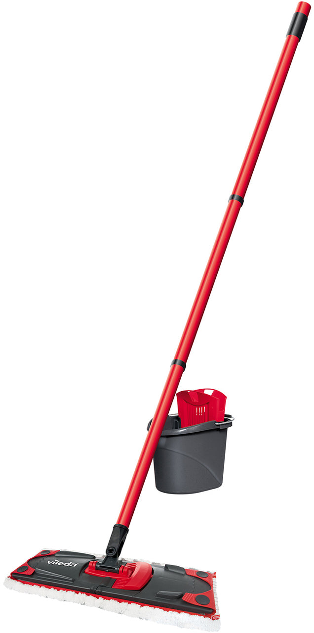 Kомплектът Vileda Ultramax Box е подходящ за почистване за всякакъв вид подови настилки - паркет, плочки, ламинат и други. Телескопичната дръжка и въртящата се на 360° глава улесняват почистването дори на най-труднодостъпни места. Усилените Power зони на пластмасовата рамка увеличават натиска и помагат за премахването на замърсяванията. При пране и изтискване на кърпата не се налага да се пипа с ръка, благодарение на специалната кофа.