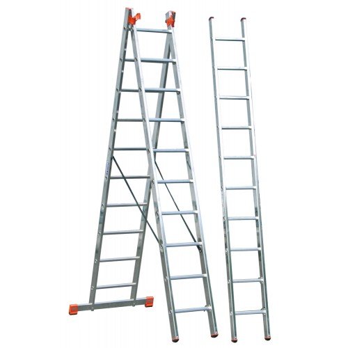 - Алуминиева стълба от три части за разностранна употреба: може да се използва като подпираща се, стояща и изтегляща се стълба