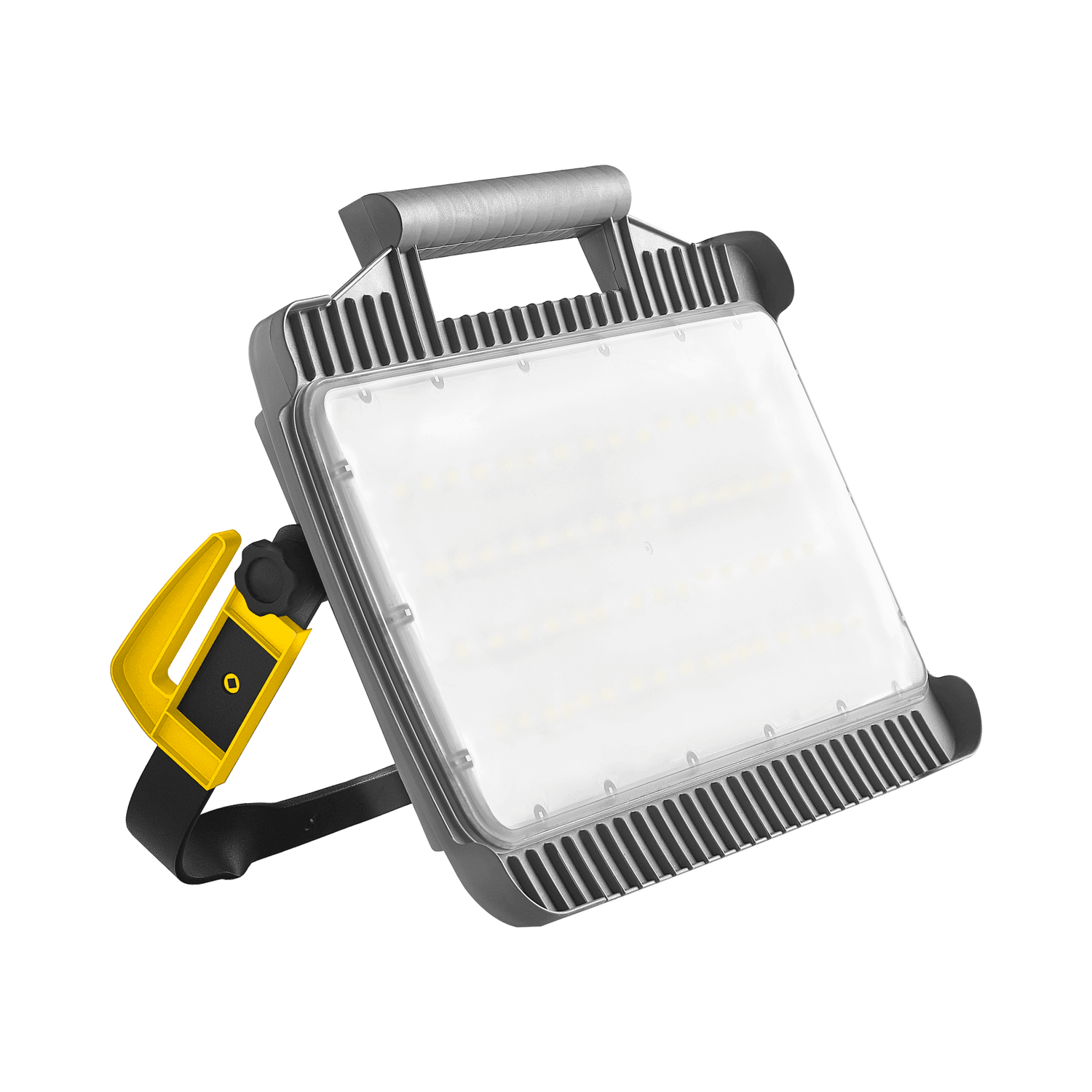 Компактен и лек LED прожектор за професионална употреба. Осигурява равномерно и стабилно насочено осветление. Осветително тяло от удароустойчив полипропилен (PP). Антирефлексен разсейвател от поликарбонат (PC), който въпреки матовата повърхност пропуска до 80% от светлината, излъчвана от диодите. Оборудвана е с многопозиционно рамо с фиксатор за накланяне на корпуса, дръжки за навиване на кабела и ергономична дръжка за носене.