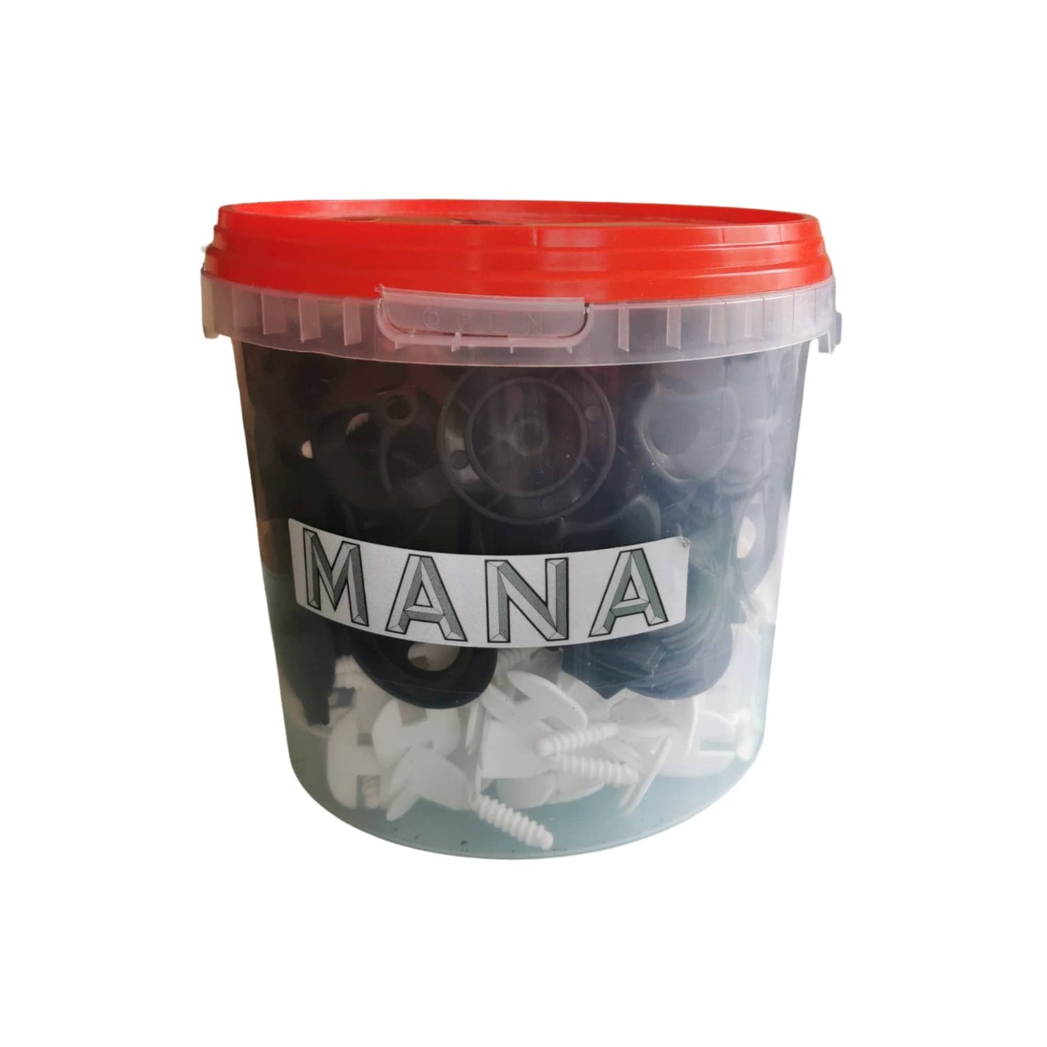 MANA нивелираща система за плочки 50 винта 1mm + 50 гайки + 50 противоплъзгащи подложки - в кофа