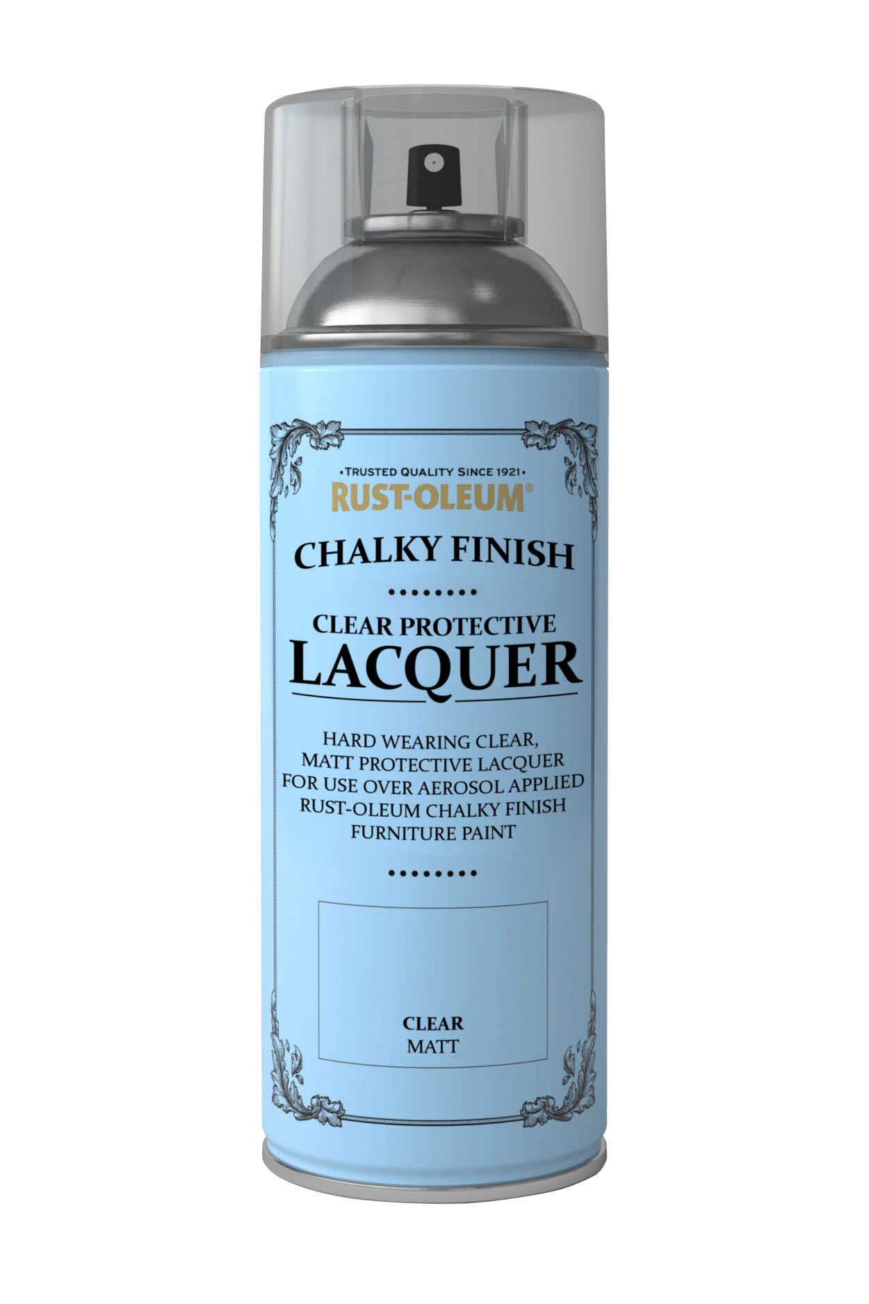 Rust-Oleum Furniture Lacquer (спрей) е издръжлив защитен лак за употреба върху Rust-Oleum Тебеирени бои за мебели.